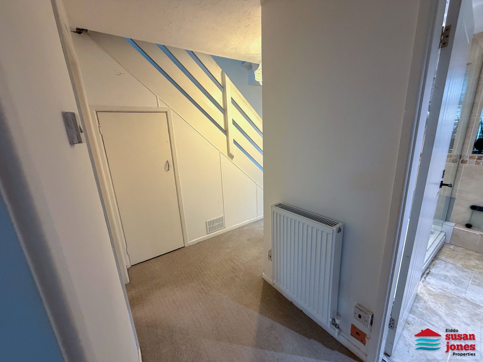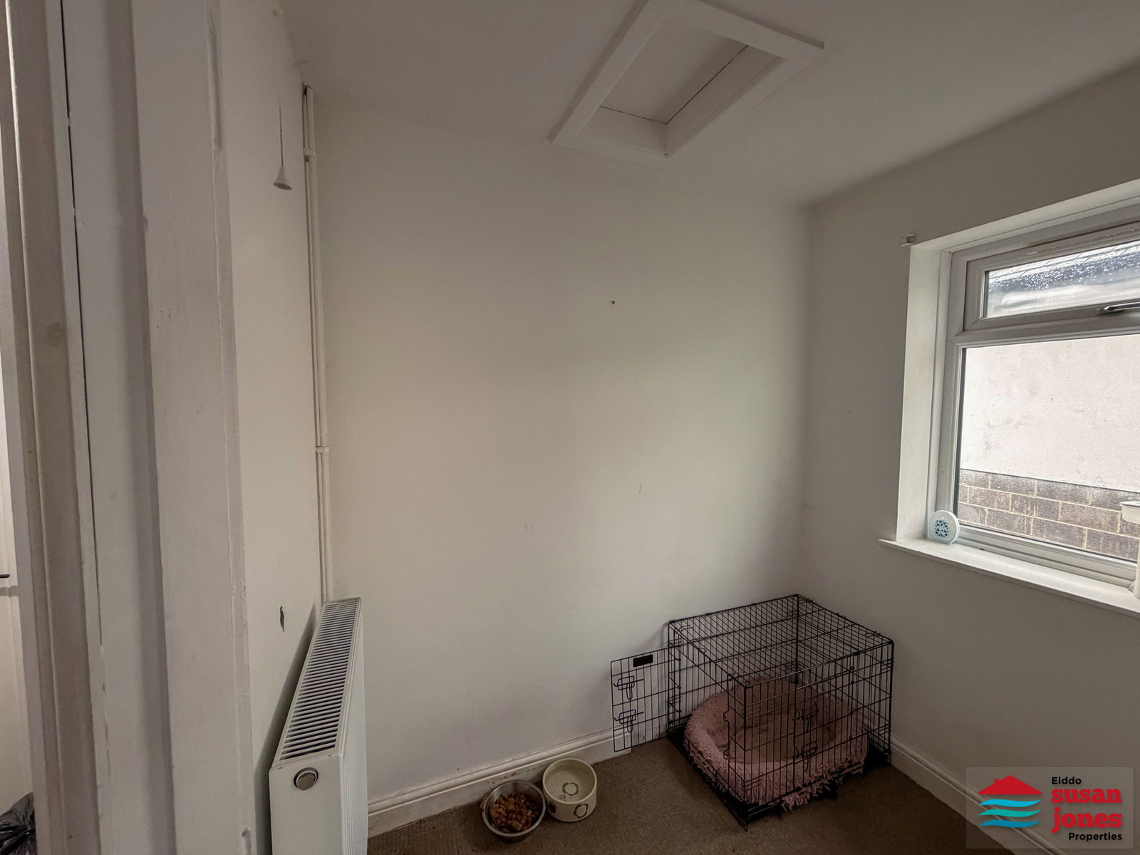 A bright and well proportioned living space with a large window. Seasonal views towards Criccieth Castle and glimpses of the sea can be enjoyed. Radiator.