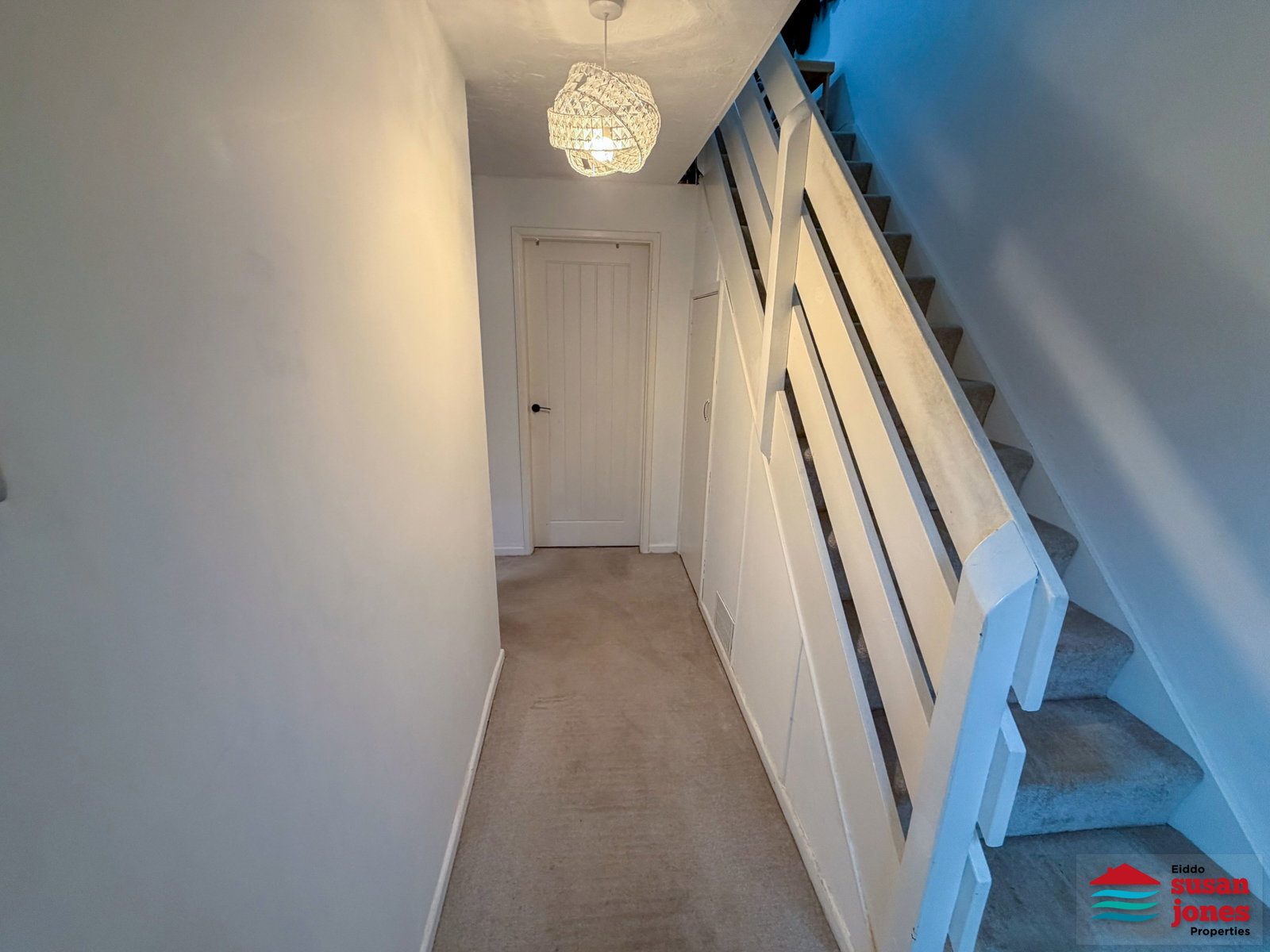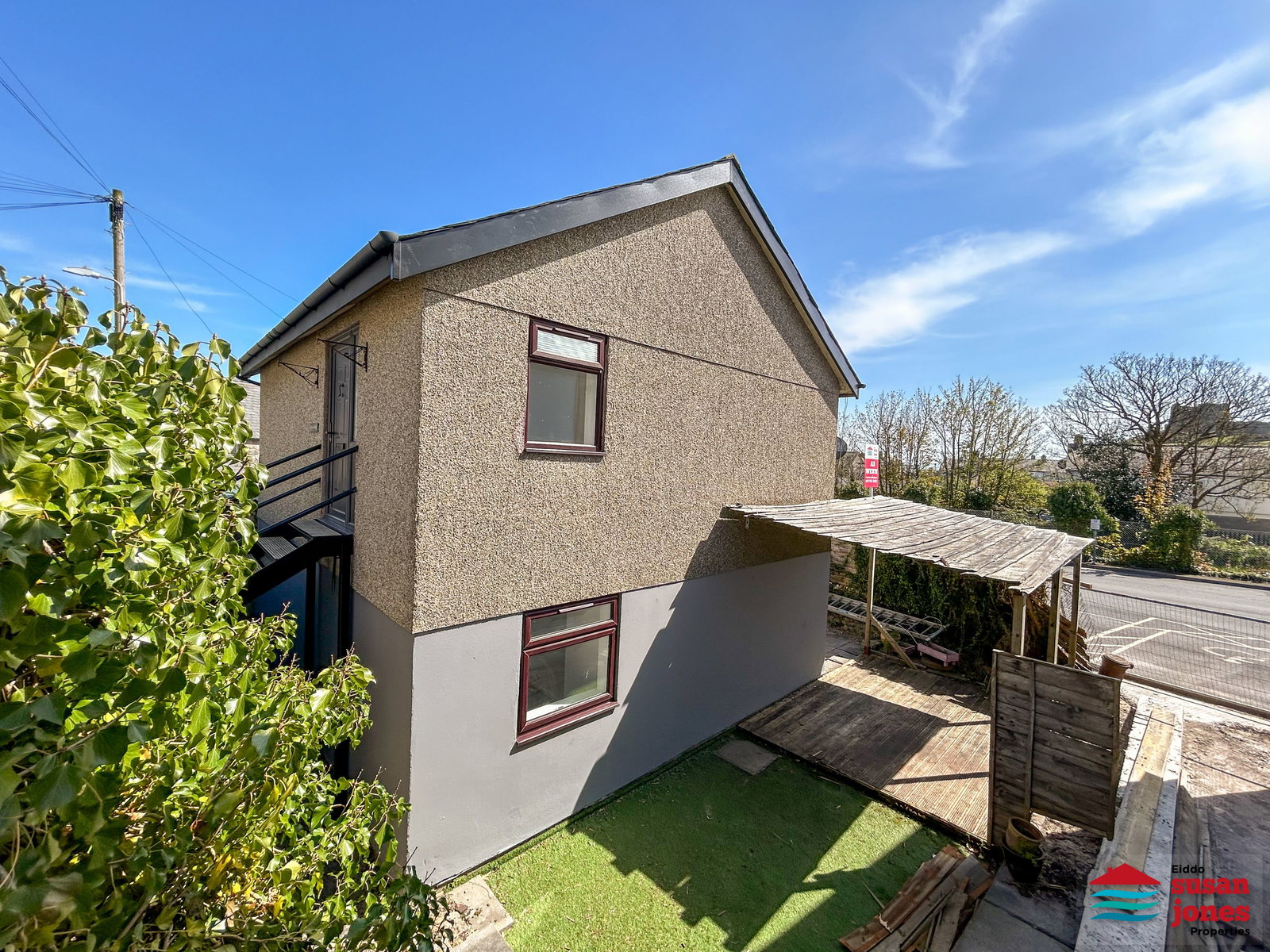 Ty ar wahân 3 llofft yng nghanol Criccieth, yn cynnig cynllun hyblyg a phatio preifat. | Unique 3 bed upside down home in central Criccieth, offering light filled living accommodation, patio space and glimpses towards Criccieth Castle.