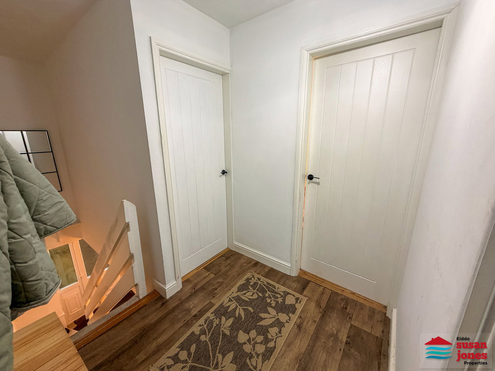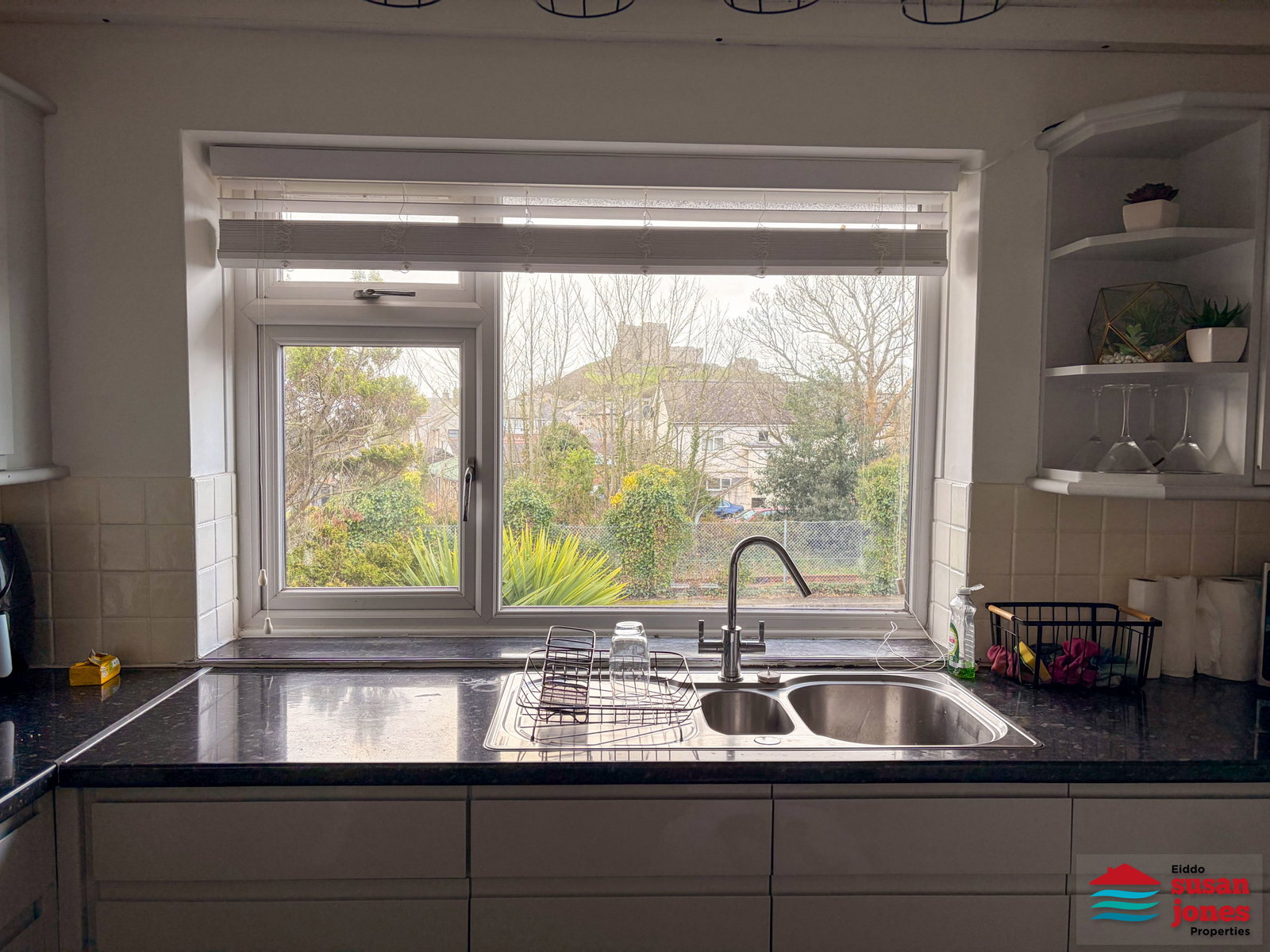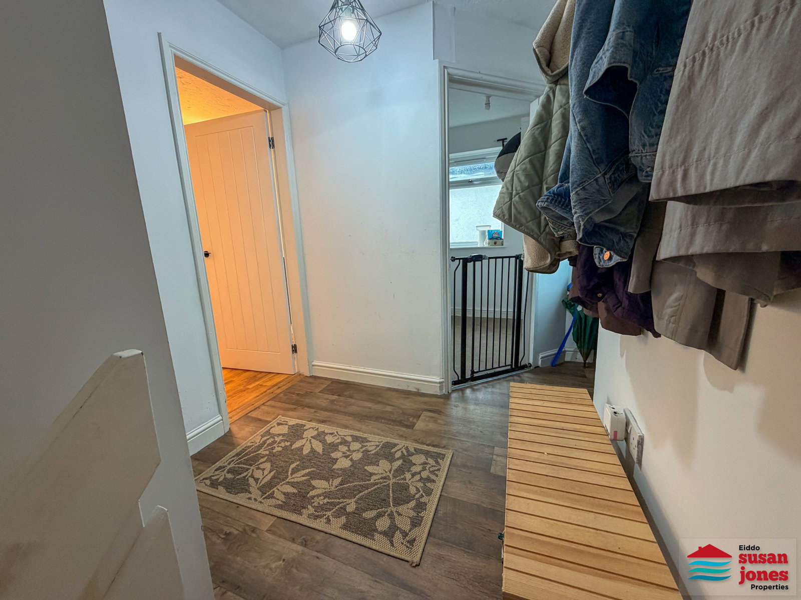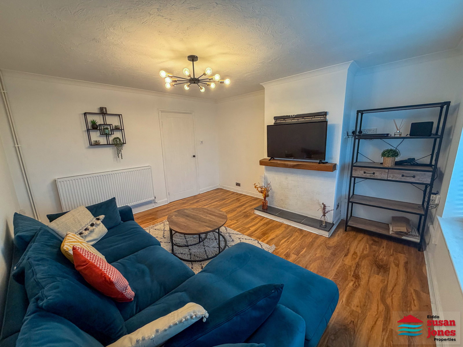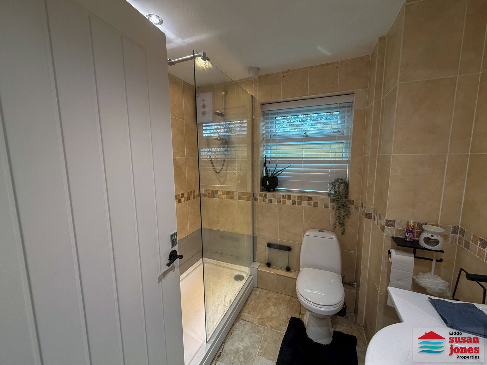This appealing property features an upside-down layout, with the main living accommodation positioned on the upper floor to make the most of natural light and seasonal views towards Criccieth Castle and glimpses of the sea. Bedrooms are arranged on the lower level, providing a practical and comfortable separation of space.
