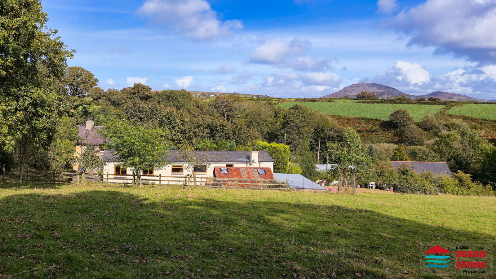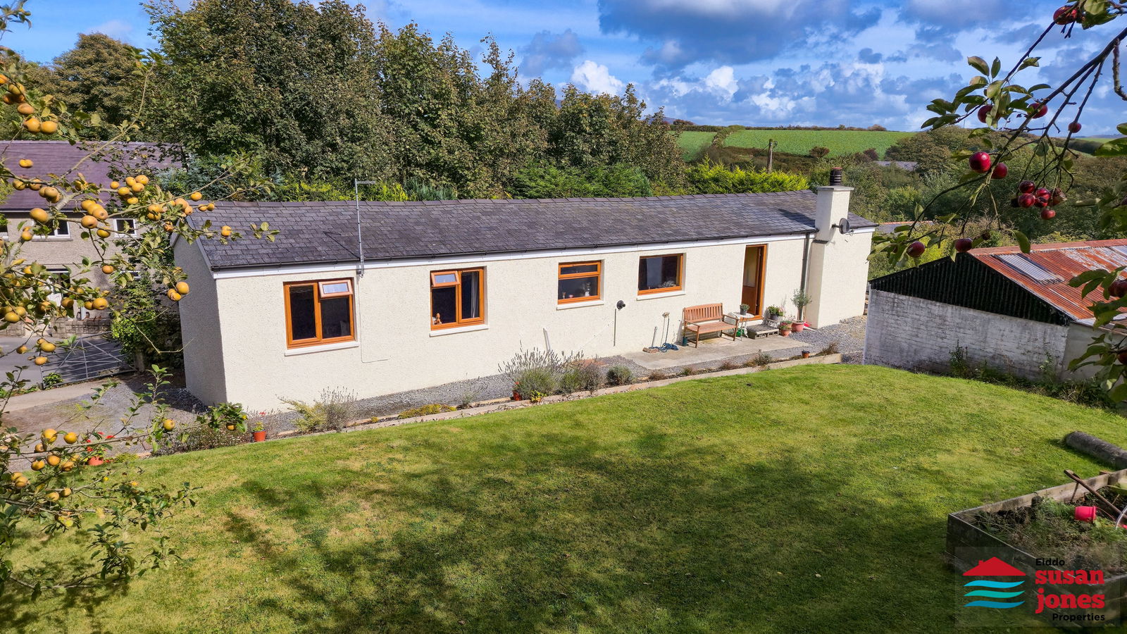 Byngalo ar wahân gyda thua 1.3 acer o dir amaethyddol, sydd hefyd gyda gweithdy, garej, parcio a gerddi. | A charming detached bungalow with approximately 1.3 acres of agricultural land, plus workshop, garage, parking and garden.