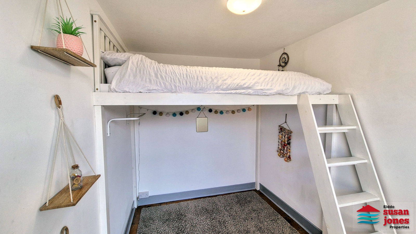 Exposed floorboards, uPVC double glazed window. A built-in double loft bed with ladder to utilise the space below.