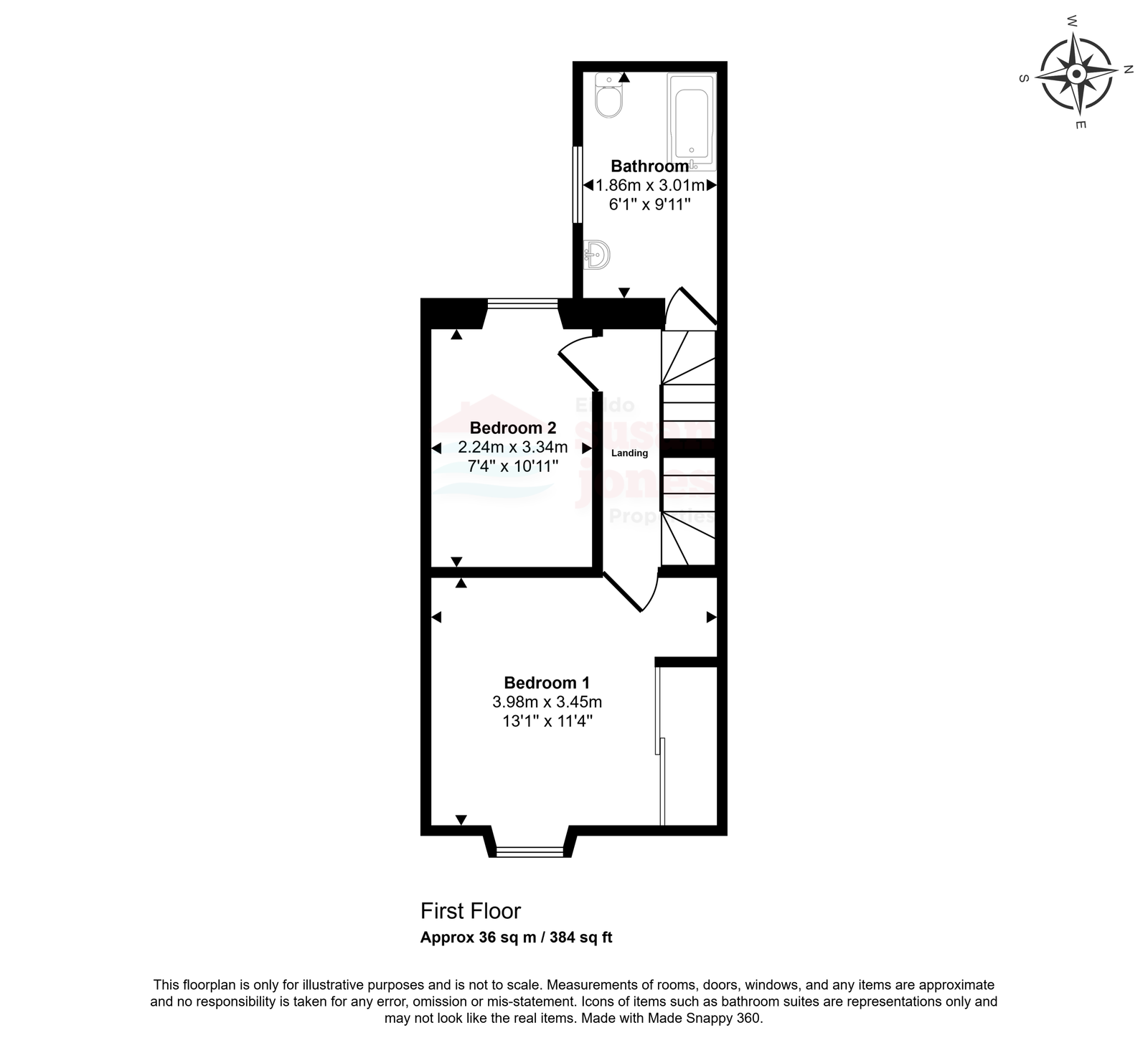 Ail lawr | second floor: - 0.75m x 1.21m (2'5" x 3'11")