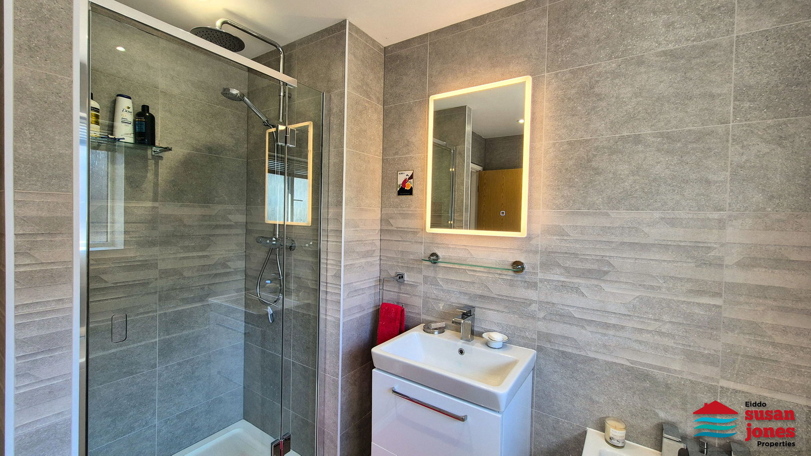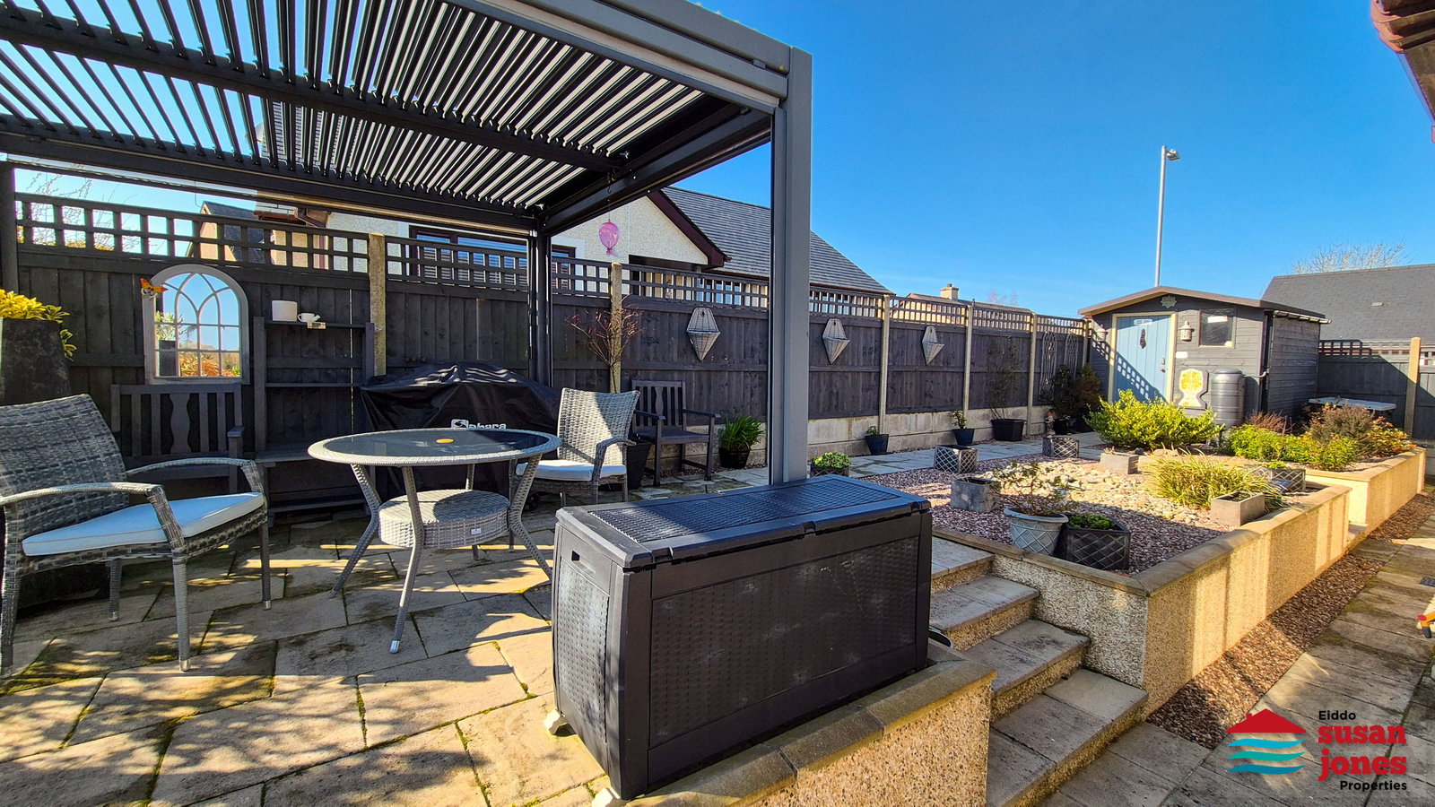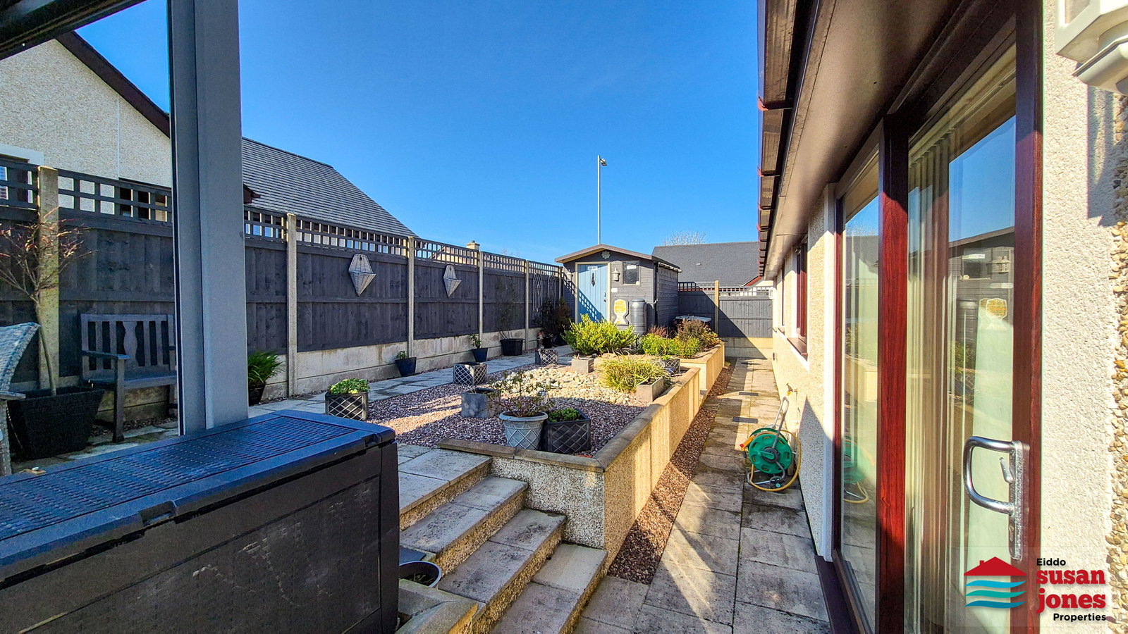 The property offers ample off-street parking at the front and a well-manicured, low-maintenance garden, creating an ideal outdoor retreat. An elevated gazebo area provides the perfect spot to relax or entertain while enjoying stunning views of the countryside and the Rhinogydd mountains in the distance. An insulated garden shed with power and lighting adds versatile space for hobbies, storage, or a workshop. A patio area completes the setting, ideal for alfresco dining and making the most of the scenic surroundings with minimal upkeep.