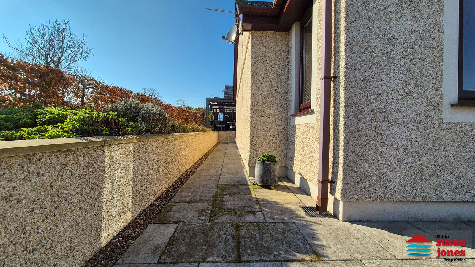 In the village of Abererch, turn into Tan Yr Eglwys, the new bungalow can be seen ahead of you. Map coordinates: 52.902748 -4.383670 What3Words: ///radiates.brilliant.sunflower
