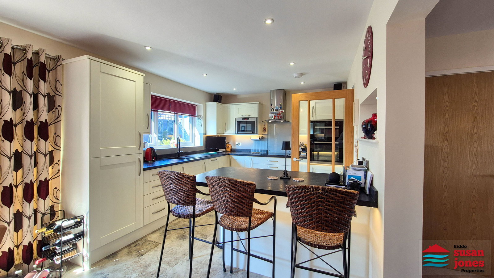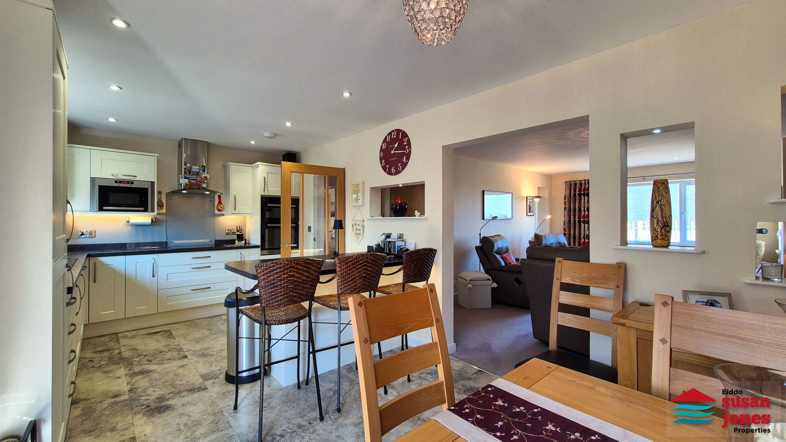 Yn galon y cartref mae cegin fwyta agored ac ystafell fyw ar wahân sydd wedi ei orffen i safon uchel, gyda dreif, gardd daclus a theras.