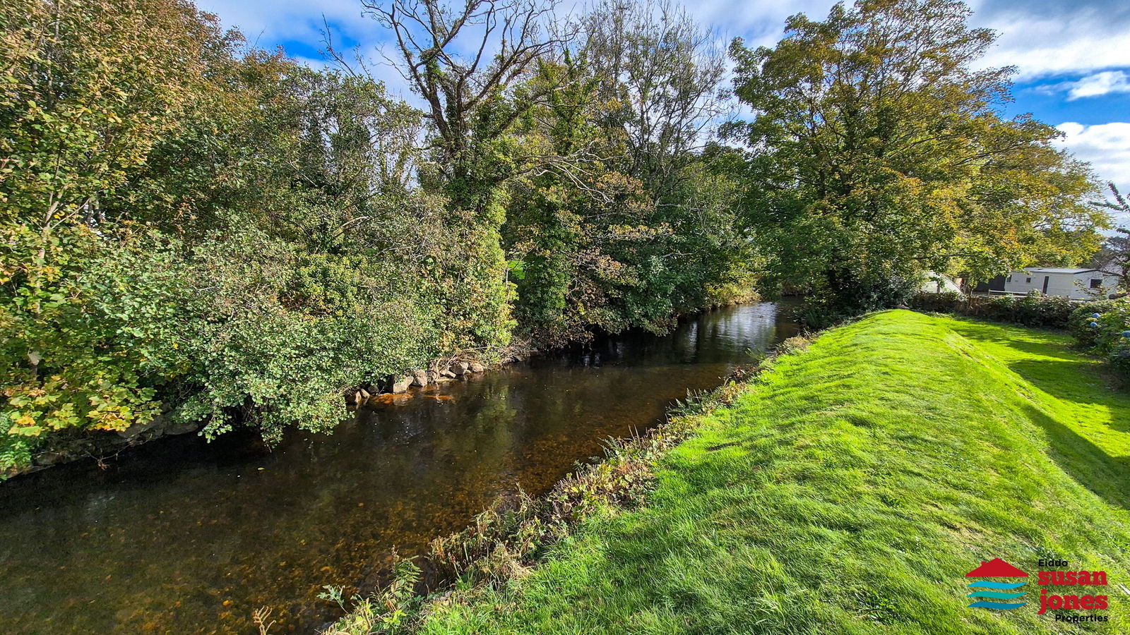 Outside, the property features a private driveway with off-road parking, an attached garage, and expansive lawned gardens that extend to the side, reaching the scenic riverbank of the Afon Erch. This tranquil setting allows you to enjoy the gentle sounds of the river as it flows by, a natural soundtrack that enhances the peaceful atmosphere, providing a calming, nature-inspired backdrop, perfect for relaxing or simply watching the world go by.