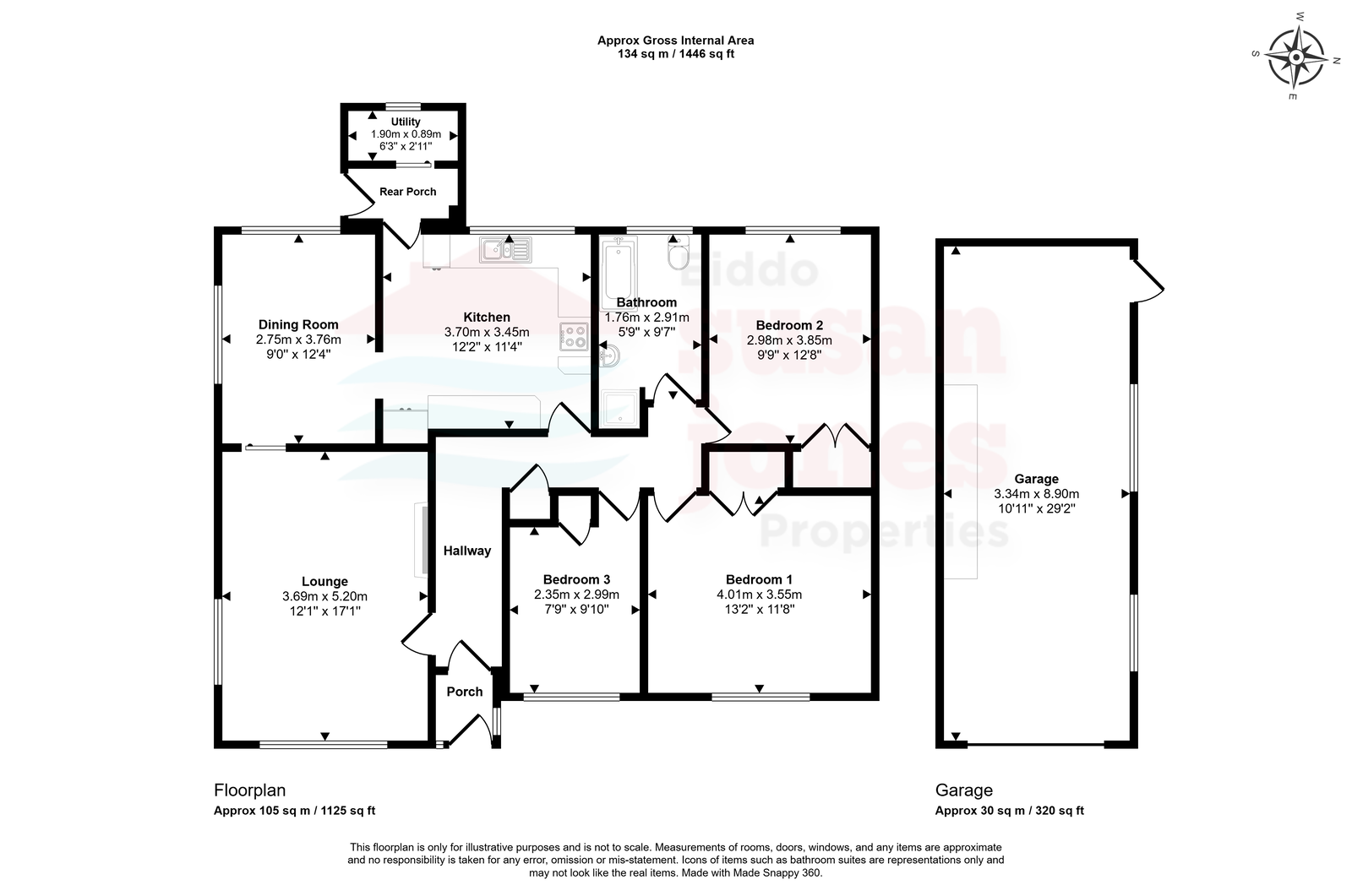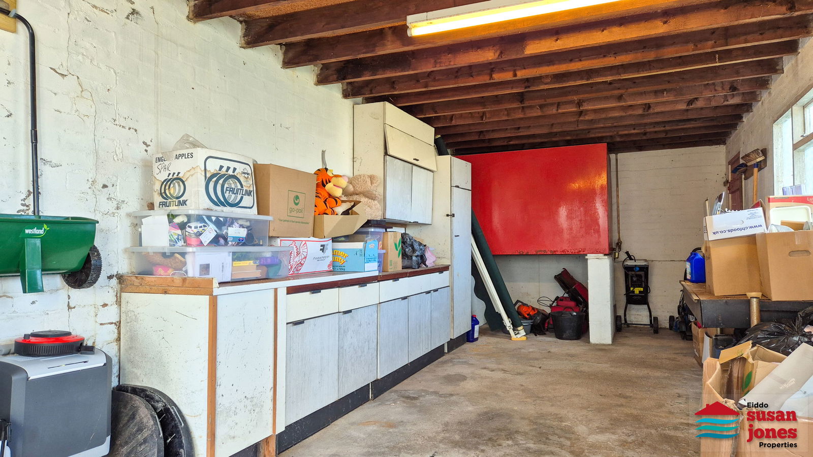Front lawned garden with paved path. Private driveway leading to large garage/workshop: 3.34m x 8.9m (10'11" x 29'2") Electric roller door, power and light plus oil tank. Rear lawned garden, paved patio area and greenhouse.
