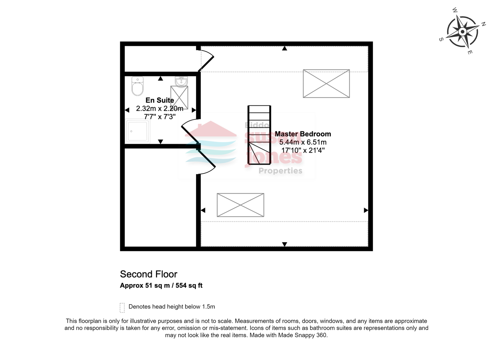 Llofft atig 5 | attic bedroom 5: - 5.44m x 6.51m (17'10" x 21'4") Maximum measurements.